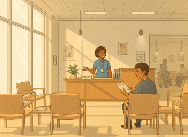 Het was niet altijd duidelijk met wie ze moesten praten: er waren mensen die wilden registreren, mensen voor het interview, daklozen en verdwaalde mensen. Nu moet het team mensen regelmatig doorverwijzen naar het registratiecentrum, maar de situatie is beter dan vroeger. Met twee aparte locaties hoeft het team niet meer te beslissen wie prioriteit krijgt bij het geven van informatie – mensen die registreren of mensen die hun interview hebben. Het Startpunt-team kan iedereen evenveel tijd en aandacht geven.